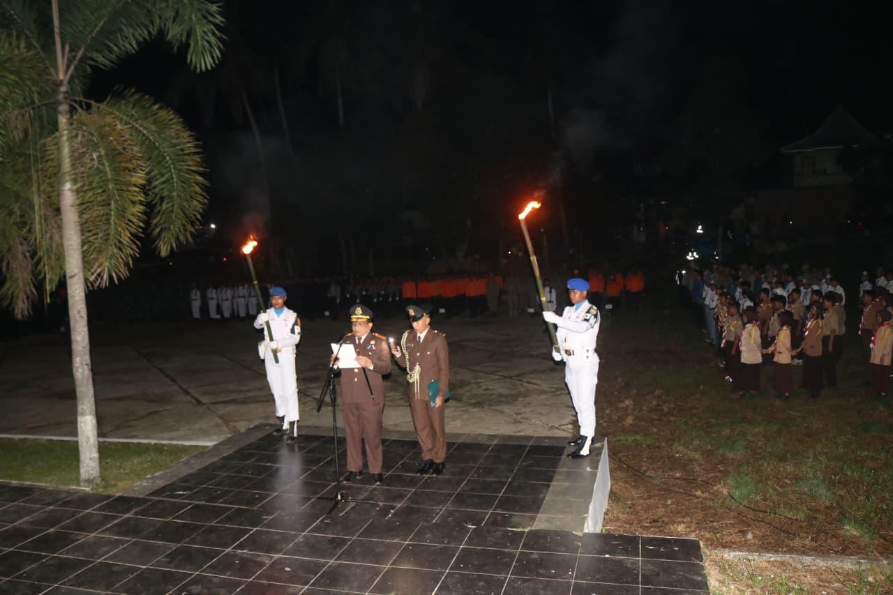 “Acara malam ini khidmat, kita datang kepada orang-orang yang berjasa, orang-orang yang rela mengorbankan jiwa dan raganya (untuk negara, red). Dan kita yang masih hidup ini yang melanjutkan perjuangan mereka, datang menghormati mereka sebagai bakti kita, sekaligus penghormatan kita kepada para pahlawan,” kata Suhardi Duka.