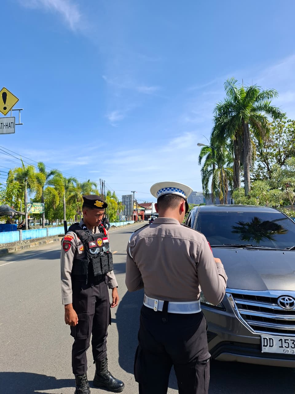 Setiap pengendara yang melintas terlihat diberhentikan untuk dilakukan pemeriksaan. Dengan pendekatan humanis serta komunikasi yang hangat, petugas memberikan edukasi terkait pentingnya keselamatan berkendara, mulai dari penggunaan helm dan sabuk pengaman hingga kelengkapan administrasi kendaraan.