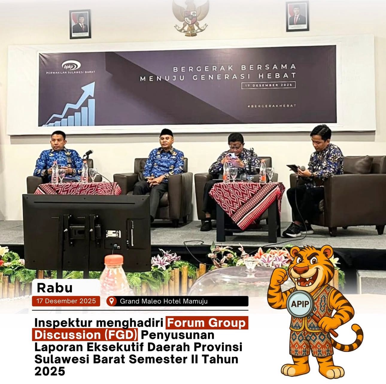 Deskriptif, Mamuju – Inspektur Sulawesi Barat Muh Natsir bersama sekretaris Abdul Syahid Hasan bersama jajaran menghadiri kegiatan Forum Group Discussion (FGD) penyusunan laporan eksekutif daerah provinsi Sulbar semester II tahun 2025.